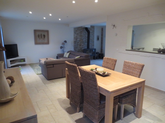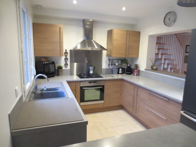 Proche Tournan maison comprenant entrée salon séjour avec cheminée, cuisine équipée, buanderie, WC et garage.